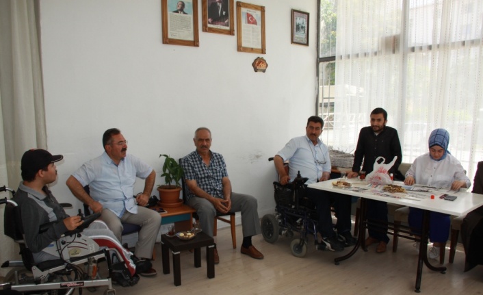 Dernek üyeleriyle sohbet eden Acehan, engelliler için ilçede yaptıkları çalışmaları anlattı.
