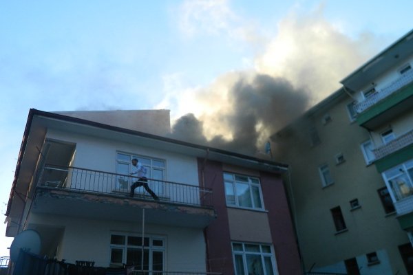 Cumhuriyet Mahallesi Yağmur Sokak No: 3 adresindeki Musa Korkmaz'a ait 3 katlı evin çatı katında 16:45 sıralarında henüz bilinmeyen bir nedenle yangın çıktı.