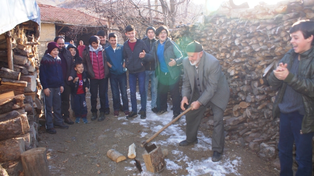 Öğrenciler, sabahın ilk ışıklarıyla doğada yürüyüş yaptı, köydeki tavukları yemledi, inekleri sağdı, hayvanlar için yem hazırlayıp odun kırdı ve arkadaşlarıyla şehir hayatından uzak yaşamın tadını çıkardı.