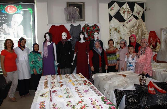 Sergide, 45 kursiyer tarafından yapılan eserlerin sadece bir kısmını sergileme imkanı bulduklarını kaydeden Karagöz, "Kurslarımızın amacı sadece insanlara belge vermek değil onları üterken yapmak ve aile bütçelerini katkıda bulunmalarını sağlamaktır. Bu gün burada nakış öğretmenimiz Gülhan Seven ve giyim öğretmenimiz Feride Yavuz tarafından nakış, tel kırma, tel sarma, iğne oyası, kurdele nakış, pul boncuk işleri ve hazır giyim üzerine eğitimler verilmiştir" dedi.