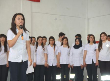 Meslek Dersleri Öğretmeni Ayşegül Günaydın ile birlikte meslek hayatına yeni başlayacak mezun öğrenciler "Meslek Andı"nı okudu.
