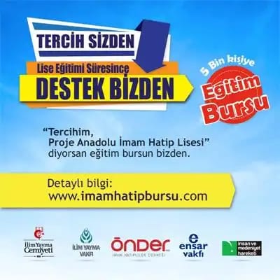 ÖNDER İmam Hatipliler Derneği, İlim Yayma Cemiyeti, İlim Yayma Vakfı, Ensar Vakfı ve İnsan ve Medeniyet Hareketi, bu yıl ilk kez yapılan Liselere Giriş Sınavı'nda (LGS) başarılı olan ve imam hatip tercihinde bulunan öğrencilere burs verecek.