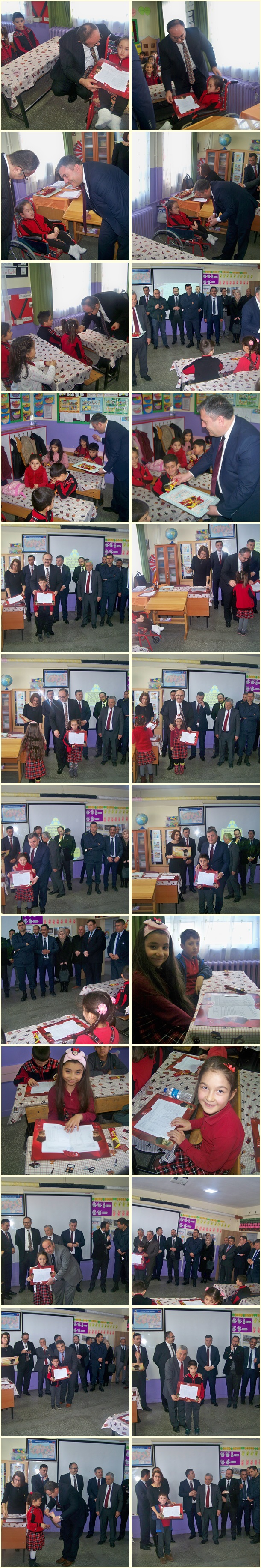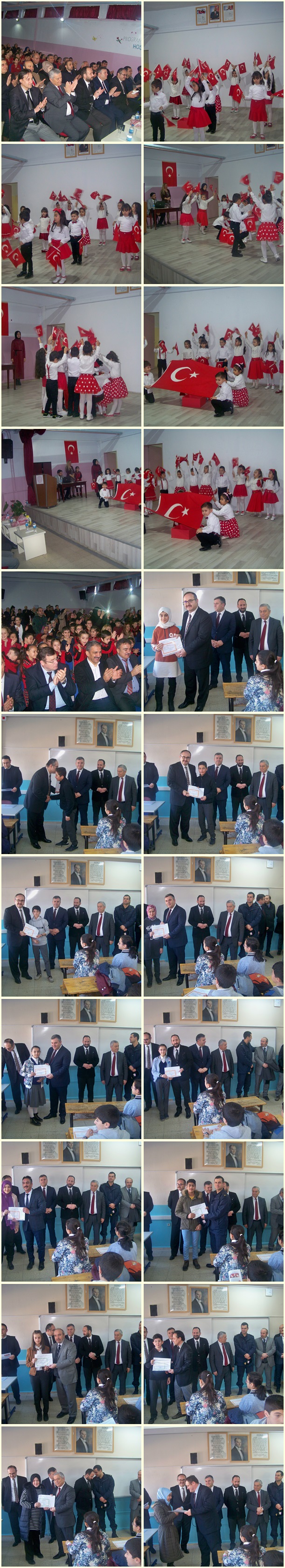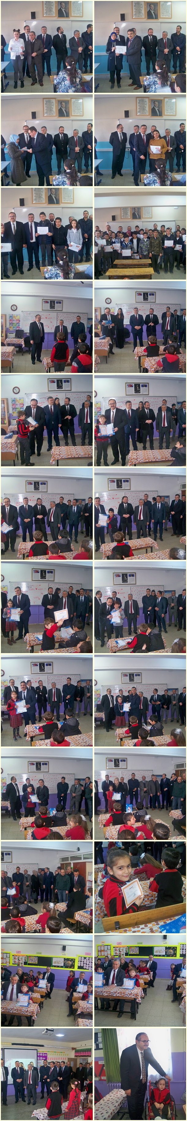 Törene katılan İlçe Kaymakamı Adem KELEŞ, Belediye Başkanı Av. Baki DEMİRBAŞ, İlçe Milli Eğitim Müdürü Murat ASLAN ve beraberlerindeki heyet öğrenciler ile sohbet ederek onlara karnelerini ve hediyelerini verdi.