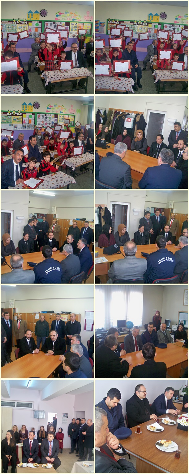 Daha sonra sınıfları gezen İlçe Kaymakamı Adem KELEŞ ve beraberindeki heyet, öğrencilerin dönem boyunca yapmış oldukları çalışmaları yerinde inceledi.