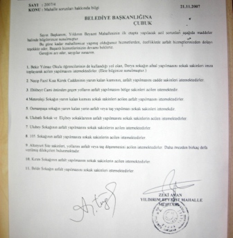 11 sitenin lağım atığı'nın 10 tonluk depo'da toplandığını ve bunun yeterli olmayarak lağım atıkları'nın tarlalara aktığını belirten site sakinleri lağım atıklarının kendilerini son derece rahatsız ettiğini, defalarca müracaat etmelerine rağmen bir sonuç alamadıklarını söylediler. Kokudan dolayı evlerinin pencerelerini bile açamadıklarını belirten vatandaşlar, Belediye bu bölgeyi imara açmış yol,su,altyapı,ve elektiriği buraya getirmesi gerekirken bunlar için bizden para talep ediliyor.Biz 3 yıldır belediyeye buradaki lağımı çekmesi için para ödüyoruz.Geçen yıl 1500 ytl para ödememize rağmen buraya gelen görevliler bizden sigara ve yemek talebin'de bulundular.Onların isteklerini'de yerine getirmemize rağmen yine'de burada taşan lağımı çekmeye gelmiyorlar.Sitenin alt tarafın'da bulunan tarla sahipleriyle'de zaman zaman sıkıntı yaşıyoruz,depodan taşan lağımlar direkt olarak tarlalara akıyor.Çocuklarımızın ve bizim sağlığımızı tehdit eden bu duruma bir an önce çare bulunmasını istiyoruz diyen site sakinleri yolları'nın bozuk ve çamurlu olmasın'dan dolayı dolmuşçuların zaman zaman gelmediğini'de kaydettiler.Yetkililer'den yol ve kanalizasyon sorunlarına bir an önce çare bulunmasını istediler.