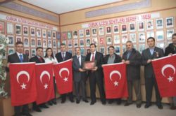 Dernek şeref defterini imzalayan Çelik ve beraberindekiler, hatıra fotoğrafı çektirdiler.