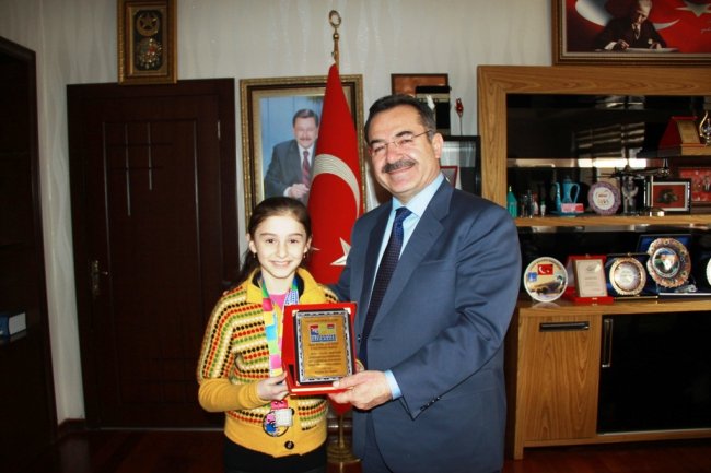 Başkan Acehan’ı makamında ziyaret eden minik taekwondocu Beyzanur Ağaören, Avrupa’da ilk defa yapılan Avrupa Minikler Açık Taekwondo Şampiyonasına katılmanın ve Avrupa 2’incisi olmanın mutluluğunu yaşadığını söyledi.