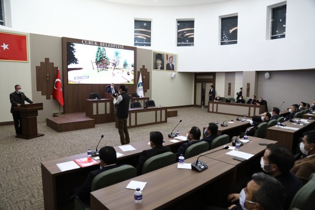 Çubuk Belediye Başkanı Av. Baki Demirbaş, siyasi parti ilçe temsilcilerine ve sivil toplum kuruluşu temsilcilerine 2021 yılında yapacakları projeleri tanıttı.