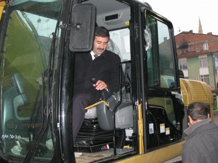 Çubuk Belediyesi'nin araç filosuna alınan ekskavatörün ilk testini Çubuk Belediye Başkanı Adem Tuğluca yaptı.
