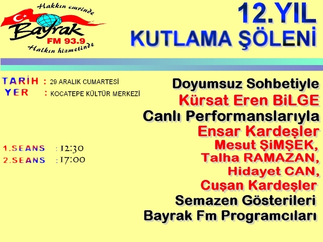 Bayrak Radyo'nun Tertiplediği 12.Yıl Şölenine Tüm Çubuk halkı davetlidir.