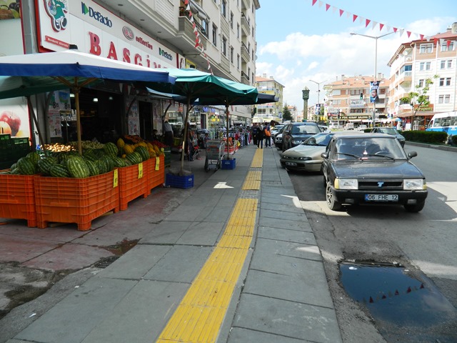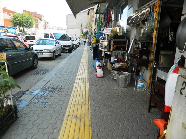 Kimi işgaller zaman zaman sarı çizgileri bile geçiyor. Hatta bazı marketlerin önünde sarı çizgiler hiç yok. Görme özürlü vatandaşlar buralarda güçlük çekiyorlar.