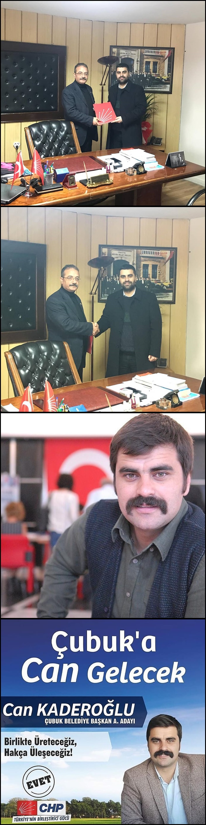“Çubuk’ a Can Gelecek” sloganı ile yola çıkan Can KADEROĞLU, başvuru formunu CHP Çubuk İlçe Başkanı Vural ÇOKCAN’a verdi.