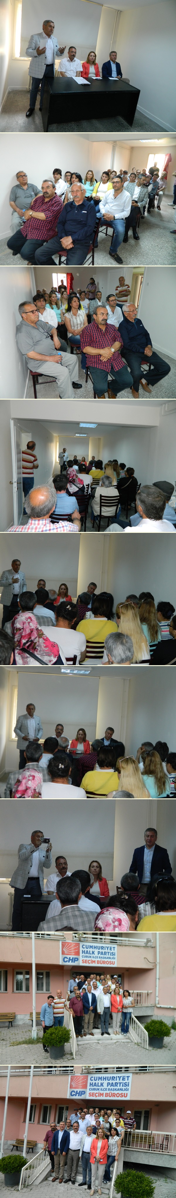 Ankara 2. Bölge milletvekilleri Dr. Murat Emir, Yıldırım Kaya ve 27. Dönem milletvekili adayı Semra Dinçer CHP Çubuk İlçe “Seçim Bürosu” önünde partililerle bir hatıra fotoğrafı çektirdiler. Ardından Ankara’ya hareket ettiler.