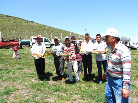Duaların ardından vatandaşlara, kurban eti, pilav ve ayran ikram edildi.