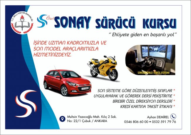 Ankara’nın Çubuk ilçesinde Muhsin Yazıcıoğlu Mahallesi Kılıç Sokak No:22/1 de SONAY SÜRÜCÜ KURSU faaliyetine başladı.