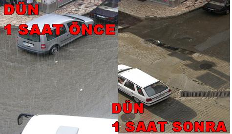 Yağmur yağışı da,şiddetli olunca çok kısa sürede etkisini gösterdi. Metropol ilçe merkezinde Alt tarafta bulunan resimdeki görüntülerin ortaya çıkmasına neden oldu.