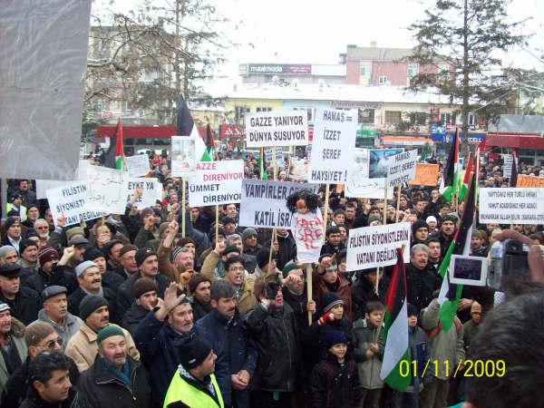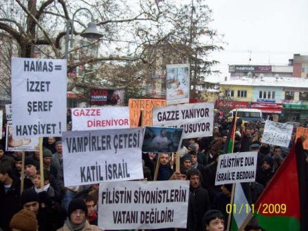 1948 yılında, Müslümanların toprakları üzerinde kurulan Siyonist terör devleti İsrail, o günden bugüne, kan içmeye ve soykırım yapmaya devam etmektedir. En son Gazze" de Cumartesi günü başlayan ve hala devam eden hava saldırılarında, 300" e yakın kardeşimiz şehit olmuş, 1000" e yakın kardeşimiz de yaralanmıştır. Şehit olan kardeşlerimize Allah" tan rahmet diliyoruz. Ve buradan Terör devleti İsrail" i ve yandaşlarını kınıyoruz.
