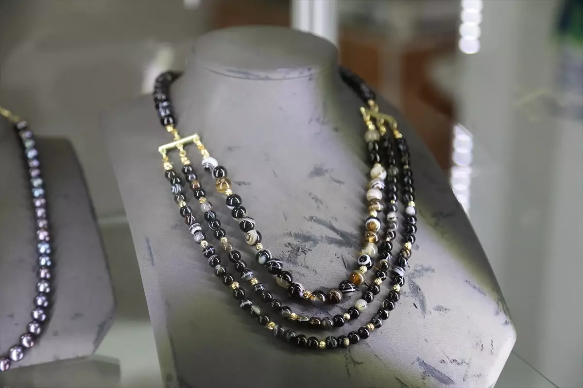Agat taşının estetik yapısı ve özgün desenleriyle çok özel olduğuna dikkati çeken Acele, "Her taş eşsizdir, bu da onu kişiye özel kılar. Kursumuzda bu taşı kum örme gibi özel tekniklerle birleştirerek kolyeler, bileklikler, küpeler, erkek bileklikleri ve tespihler gibi ürünler ortaya çıkarıyoruz." dedi.