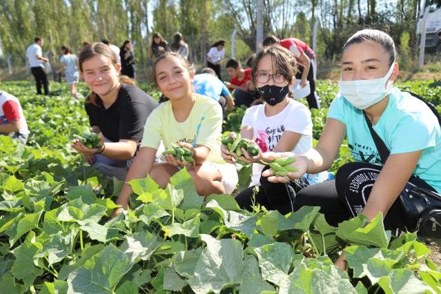 "Minik ellerimizle iyilik için üretiyoruz" projesi kapsamında, Çubuk Belediyesi tarafından tahsis edilen 2 dönümlük bahçeye ekilen fideler, ürün vermeye başladı.