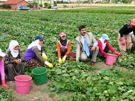 Başkanı tarlada çalışan işçilerle beraber salatalık topladı.