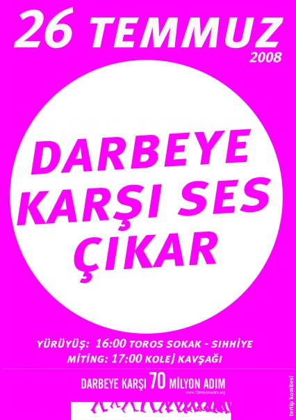 Genç Siviller Hareketi 26 Temmuz 2008 Cumartesi günü Ankara'da "Darbeye Karşı Ses Çıkar" sloganı ile yürüyüş düzenliyor.