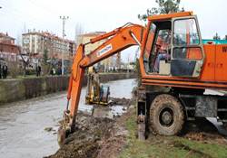 Çubuk çayı dere yatağı belediye ekiplerince temizleniyor.