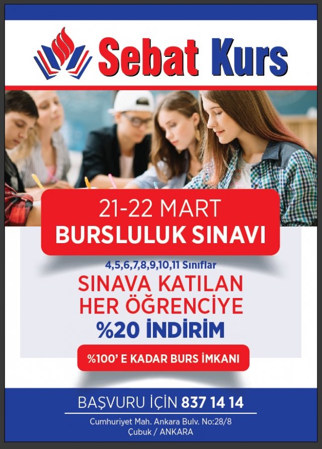Sebat Eğitim Kurumu bünyesinde eğitim öğretim faaliyetine devam eden Sebat Kurs 21-22 Mart’taBursluluk sınavı yapıyor.