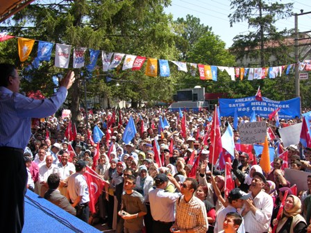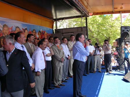 AKP'nin Atatürk Parkın'da yaptığı miting'de konuşan Melih Gökçek "AKP-DTP Koalisyonuna karşı çıkmayan,isyan etmeyen Melih Gökçek şerefsizdir".diye konuştu.