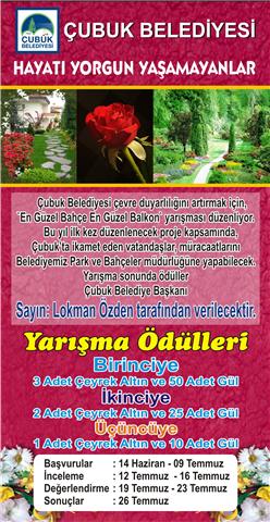 Bu faaliyetle çevre duyarlılığını artırmayı amaç edindiklerini söyleyen Çubuk Belediye Başkanı Lokman Özden, çevre duyarlılığını teşvik etmenin sosyal bir sorumluluk olduğunu belirtti. Başkan Özden, 'Hayatı Yorgun Yaşamayanlar' sloganıyla Çubuk'ta bu yıl ilk defa hayata geçirecekleri projeye ilçedeki herkesin katılmasını istedi. 21.06.2010 tarihinde başlayıp 09.06.2010 tarihine kadar müracaatların Park ve Bahçeler Müdürlünde alınacağı yarışmada, 12.07.2010 tarihinde peyzaj mimarı,Şehir plancısı ve Pak ve Bahçeler Müdüründen oluşacak jüri katılımcıların bahçe ve balkonlarında inceleme ile değerlendirme yapacak. Yarışmanın sonunda her kategoriye ayrı ayrı, en güzel bahçe ve balkon birincisine 3 çeyrek altın ve 25 adet gül, ikinciye 2 çeyrek altın ve 25 gül, üçüncüye 1 çeyrek altın ve 10 gül verilecek.