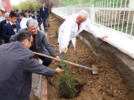 Konuşmalardan sonra Özden ile Saat, çocuklarla birlikte ilk fidanı dikti. Ağaçlandırma töreninden sonra bir süre öğretmenler odasın da öğretmenler ile sohbet eden Başkan Özden, yapılan çalışmalar hakkında bilgiler verdi.