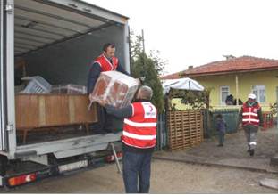 Barbaros Mahallesi Sultan Ahmet caddesindeki evini yangında kaybeden Hasan Gölcük'e Kızılay Çubuk Şubesi Ev eşyası yardımında bulundu.