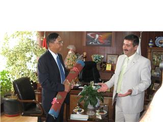 Çubuk Belediye Başkanı Adem Tuğluca’nın daveti üzerine ilçeye gelen Güney Kore Büyükelçisi Chans Yeob Kım festival hakkında uzun, uzun bilgi aldı. Başkan Tuğluca’ya ilçe hakkında da çeşitli sorular yönelten Büyükelçi Chans Yeob Kım in en çok ilgisini Organize Hayvancılık Projesi çekti. Organize Hayvancılık Projesi hakkında sık, sık sorular soran Büyükelçi projeyi yakından takip edeceklerini belirterek, uygun bir zaman da hayvan pazarını da görmek istediklerini belirtti. Çubuk Belediyesi ve halkı isterlerse Köre den bir kardeş belediye yapmak istediklerini belirtti.