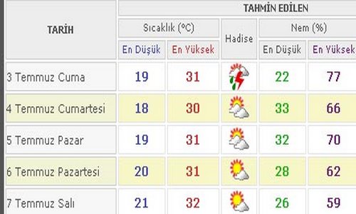 HAVA SICAKLIĞI :Önemli bir değişiklik beklenmiyor.