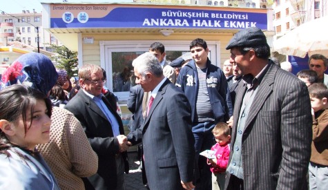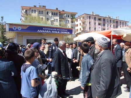 "" İlçe halkımızın da ucuz, kaliteli, besleyici, doğal ve sağlıklı halk ekmeklerinden yemek hakkı olduğunu düşündük. Halkımızın bu beklentisini Büyükşehir Belediye Başkanımız Melih Gökçek ile paylaştık ve bu konuda fikir birliğine vardık. Seçimlerden önce bizim talebimizle Belediye Meclisinde alınan karar doğrultusunda ilk etapta 5 adet halk ekmek büfesi yerleştirildi. Halkımızdan gelen talepler doğrultusunda uygun yerlere yeni büfelerde yerleştireceğiz"" dedi