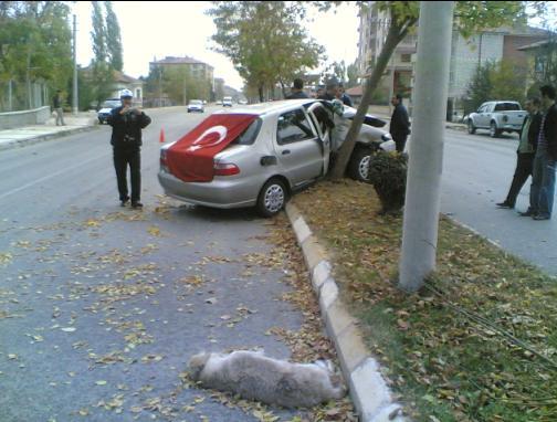 Köpeğe vurmamak için direksiyon kıran a.a. isimli şahıs,direksiyon hakimiyetini kaybederek yol kenarındaki ağaca çarptı.Çarpma sonucun'da sürücü şoka girerken araçta maddi hasar meydana geldi.