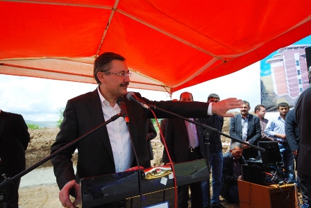 Daha sonra İlçe Müftüsü Ali Canbolat tarafından okunan dualar eşliğinde, Melih Gökçek, Cevdet Erdöl, Lokman Özden ve diğer katılımcılar temele harcı kürekle döktü.