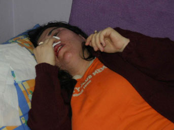 Darp sırasında merdivenlerden düşen Aynuk K, ağır yaralandı. Komşuların bildirimi üzerine olay yerine gelen polis ekipleri Alim Y'yi gözaltına alırken, anne ile kızı Halil Şıvgın Çubuk Devlet Hastanesine kaldırıldı.
