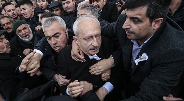 Müşteki Kılıçdaroğlu'nun saat 13.17 sularında beraberindekilerle cenaze töreninin yapıldığı alana girdiği bildirilen iddianamede, bu sırada törene katılan bazı vatandaşların, Kılıçdaroğlu ve beraberindekilerin aleyhine slogan attığı, Kılıçdaroğlu'nun törene katılmasının protesto edildiği belirtildi.