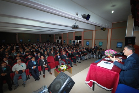 İlçe halkının yoğun ilgi gösterdiği konferans, saygı duruşu ve İstiklal Marşı ve Kur'an tilavetinin okunması ile başladı.