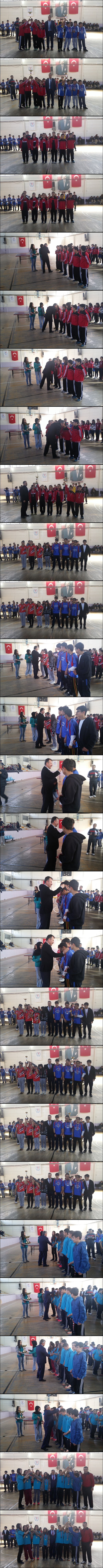 Ödüllerini alan öğrenciler, beden eğitimi öğretmenleri ile okullarından destek için gelen arkadaşlarının tezahüratları eşliğinde kutlama yaptılar.