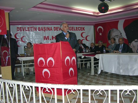 İl başkanı Ömer DEMİREL ise yaptığı konuşmada; Ülkemiz gerek siyasi gerekse ekonomik olarak yönetilebilir olmaktan çıktı. “Ülke iç ve dış güvenliği problemi en kötü dönemini yaşamaktadır. Ülke içinde bölücülerin yarattığı terör bu hükümet geldiğinde sıfır noktasında iken bugün ülkenin her köşesine şehit cenazeleri gelmeye başlamıştır. Büyük şehirlerde ise kapkaç olaylarının ulaştığı boyut nedeni ile vatandaşlarımız sokağa çıkamaz hale gelmiştir. Dış güvenlik hususunda ise ülke güvenliğine aşiret liderleri bile saldınr hale gelmişlerdir. Maalesef mevcut hükümetin ülkeyi getirdiği nokta burasıdır. Milletten aldıkları oya güvenememişler iktidara gelir gelmez meşruiyeti yurtdışında AB kapılarında aramaya yönelmişlerdir. Ülke ekonomik olarak da yönetilebilir olmaktan çıkmıştır. AKP döneminde makro ekonomi politikalarının ana hedefi maalesef milletimizin refahından çok, iç ve dış borçlar ile cari açığın mümkün olan en yüksek faizlerle finansmanı ve bu suretle uluslar arası sermaye çevrelerine fahiş karların ödenmesini teminat altına almak olmuştur. Çok yüksek olarak ifade edilen büyüme rakamlarının gerçek olmadığı, sanal olduğu da işsizliğin giderek artmasından Anlaşılmaktadır. İstihdama, vergi gelirine ve sosyal refaha hiçbir katkısı olmayan sözde ihracat artışı, yerli üretimin ve yan sanayinin yok olması pahasına gerçekleştirilmiştir. AKP döneminde yerli ürünüler ithal mallarla, yerli sanayi ise yabancı sermaye ile ikame edilmiştir. MHP iktidarında makro ekonomik politikalarının ana hedefi ise, işsizlik ve yoksullukla mücadele ve sanayimize mümkün olan en yüksek rekabet gücünün, milletimize ise mümkün olan en yüksek refahın sağlanması olacaktır. İşsizlik ve yoksulluk milletimizin kaderi olmaktan çıkacaktır. Ülkenin güvenlik sorunu en kısa sürede çözülecektir. Milletimizin bu hususta MHP'ye olan güveni tamdır. Vatandaşlarımız sandıkta AKP'ye gereken hesabı soracaktır” diye konuştu.