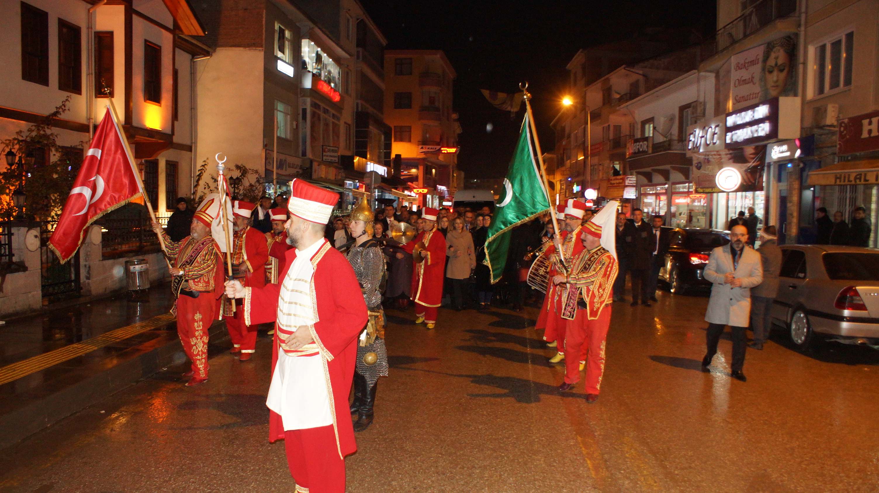 Cumhuriyet Mahallesi Kıbrıs Caddesinde bulunan MHP İlçe Teşkilatı binası önünde toplanan partililer, mehter takımının çaldığı mehter marşı eşliğinde Kıbrıs ve Atatürk Caddelerinde kortej yürüyüşü yaparak halkı selamladılar.