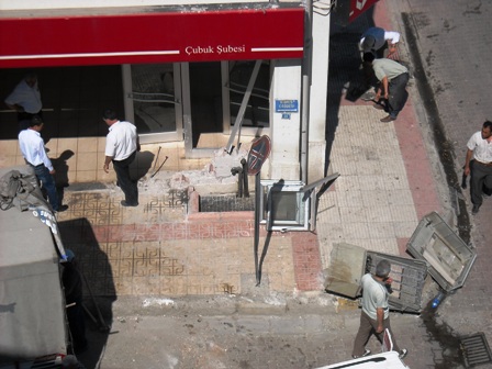 ÇUBUK - 12.07.2008 tarihinde gece saat 00:10 sularında Atatürk caddesinden çarşı merkezine gelen Ford marka minibüs, şahin marka araca çarptıktan sonra bankaya girdi. Bankaya büyük çapta hasar veren araç sürücüsünün aşırı süratli ve alkollü olduğu belirtildi. Alkollü sürücü Telekom santraline de büyük çapta hasar verdi.
