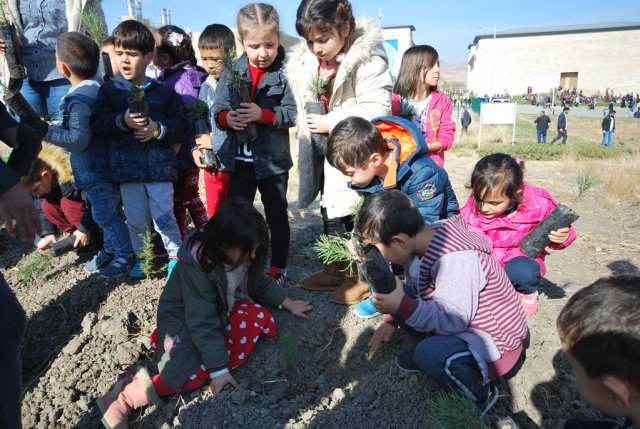 Gelecekte belki de okuyacakları üniversitenin külliyesini ağaçlandıran minik çocuklar bir taraftan da ağaç sevgisini iliklerine kadar işlediler.