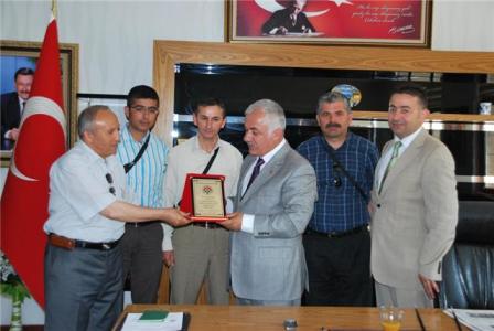 Satranç turnuvası koordinatörü Veysel Kılınçarslan ve hakemler Ali Sarıkaya, Şenol Türkmen, Celal Aydın, Ali Kaleli’den oluşan heyet Çubuk Belediye Başkanı Lokman Özden’i makamında ziyaret ederek, ilçede ilk defa yapılan turnuvaya katkı sağladıklarından dolayı teşekkür plaketi takdim ettiler. Ziyarette bir açıklama yapan Veysel Kılınçarslan, ilçede düzenlemiş oldukları satranç turnuvasına Başkan Özden’in kendilerine her türlü desteği verdiğini ve bu katkılarından dolayı teşekkür plaketi verdiklerini söyleyerek,’’Kafamızda böyle bir proje olduğunu kendilerine söylediğimizde, sayın başkanımız bize her türlü desteği vereceklerini söylediler. Çok kısa bir sürede bize bu turnuvanın hazırlanmasında her şeyi seferber ederek ilk organizasyonumuzda başarılı olmamızı sağladılar. Yapılan bu başarılı organizasyon ile satranç sporu ilçemizde yaygınlaşmıştır. Biz tüm sporcularımız adına kendilerine çok teşekkür ediyoruz’’ dedi