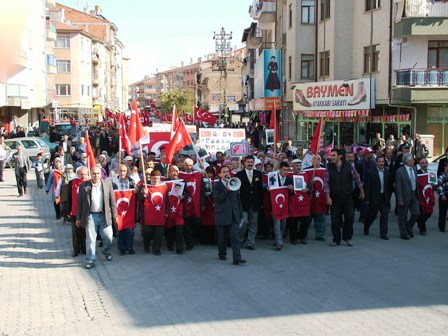 Bütün dualarımızla onların yanında ve emirlerinde olduğumuzu bu vesile ile bir kez daha belirtmek istiyoruz. Sınır ötesi operasyonlar için Türk Silahlı Kuvvetleri"ne yetki veren teskereye Türkiye Büyük Millet Meclisi"nden destek veren siyasi partilere ve milletvekillerine, şehit aileleri ve gazilerimiz adına teşekkür ediyoruz, destek vermeyen DTP yi de KINIYORUZ.