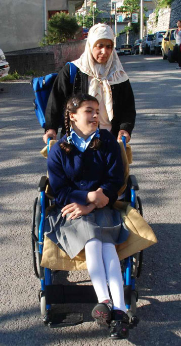 Aynı zamanda sara hastası olan çocuğunu, komşusunun sürekli engellemesi nedeniyle tekerlekli sandalyeyle ana yola çıkaramayan anne Kurt, evladını sırtında taşıyarak sağlık ve eğitim hizmetlerinden faydalanmasını sağlıyor.