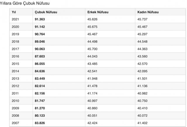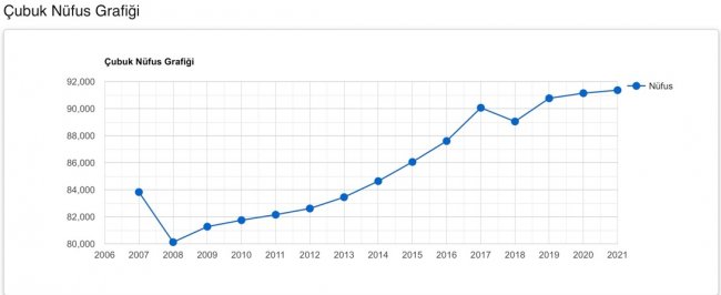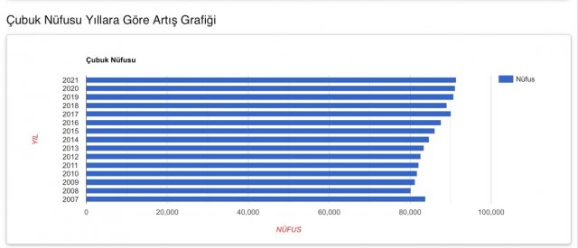 Çubuk'un Yıllara Göre Nüfus Oranları
