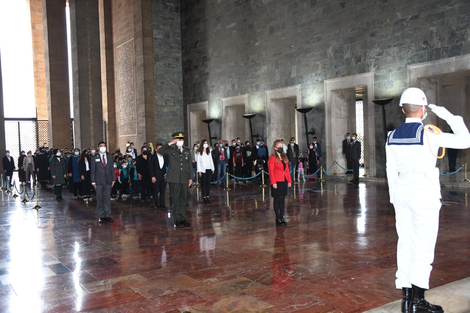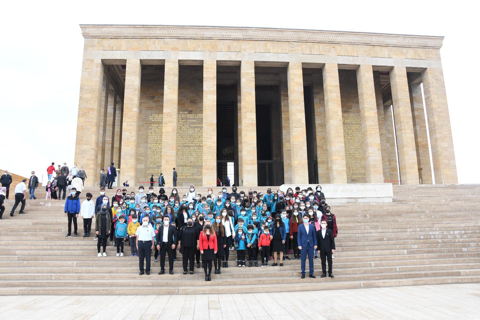Resmi törenin ardından Sebat Koleji yöneticileri, öğretmenleri ve öğrencileri Anıtkabir önünde hatıra fotoğrafı çektirdiler.
