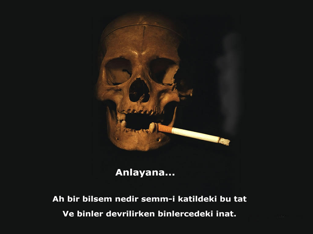 Kaçmaz'ın hazırladığı broşürde, ''Dünya Sağlık Örgütü verilerine göre, sigara dünyada her yıl 5 milyon, Türkiye'de ise 110 bin insanın ölümüne neden olmaktadır. Tüm dünyada kırmızı bültenle aranan ve insanlık tarafından suçlu ilan edilen sanığın kimlik bilgileri aşağıya çıkarılmıştır'' denildi.